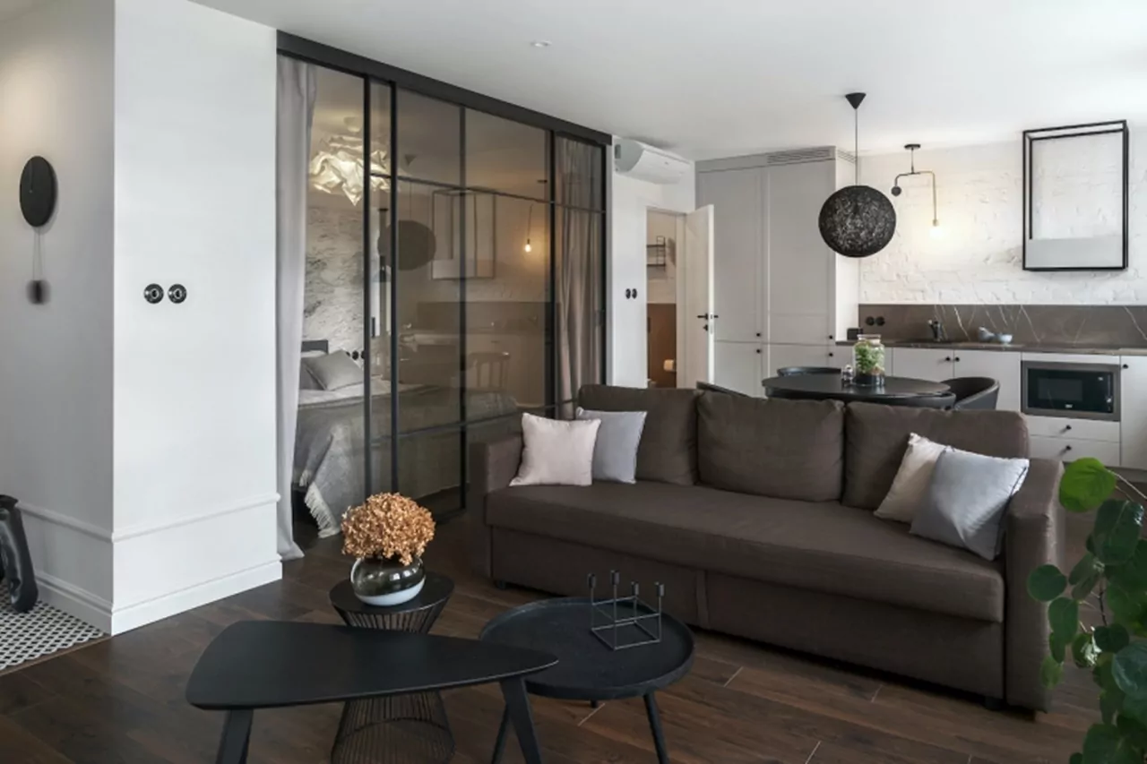 Jeśli masz duży apartament na planie otwartym, wówczas możesz naprawdę poszaleć z dekoracyjnymi patentami na drzwi przesuwne i szklane ścianki. Skorzystać z rozmaitych rozwiązań zarówno technicznych, jak i estetycznych. Wybrać szkło transparentne, przydymione lub różnego rodzaju dekoracyjne. Dobrać układ szprosów, by dodać wnętrzu industrialnego charakteru, nawiązać do japońskiego minimalizmu, wyrafinowanego glamouru lub art deco, szalonego postmodernizmu czy też zdecydować się na bardzo modny gęsty poziomy układ przypominający żaluzje.