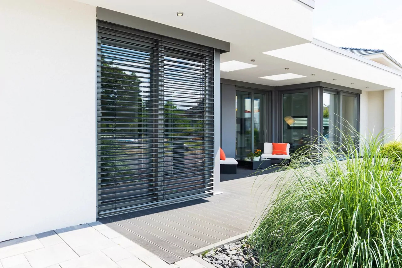 Żaluzje fasadowe zapewniają znakomitą ochronę przed słońcem oraz ochronę przed promieniowaniem UV, skutecznie blokując szkodliwe promienie i zmniejszając przenikanie ciepła do wnętrza.