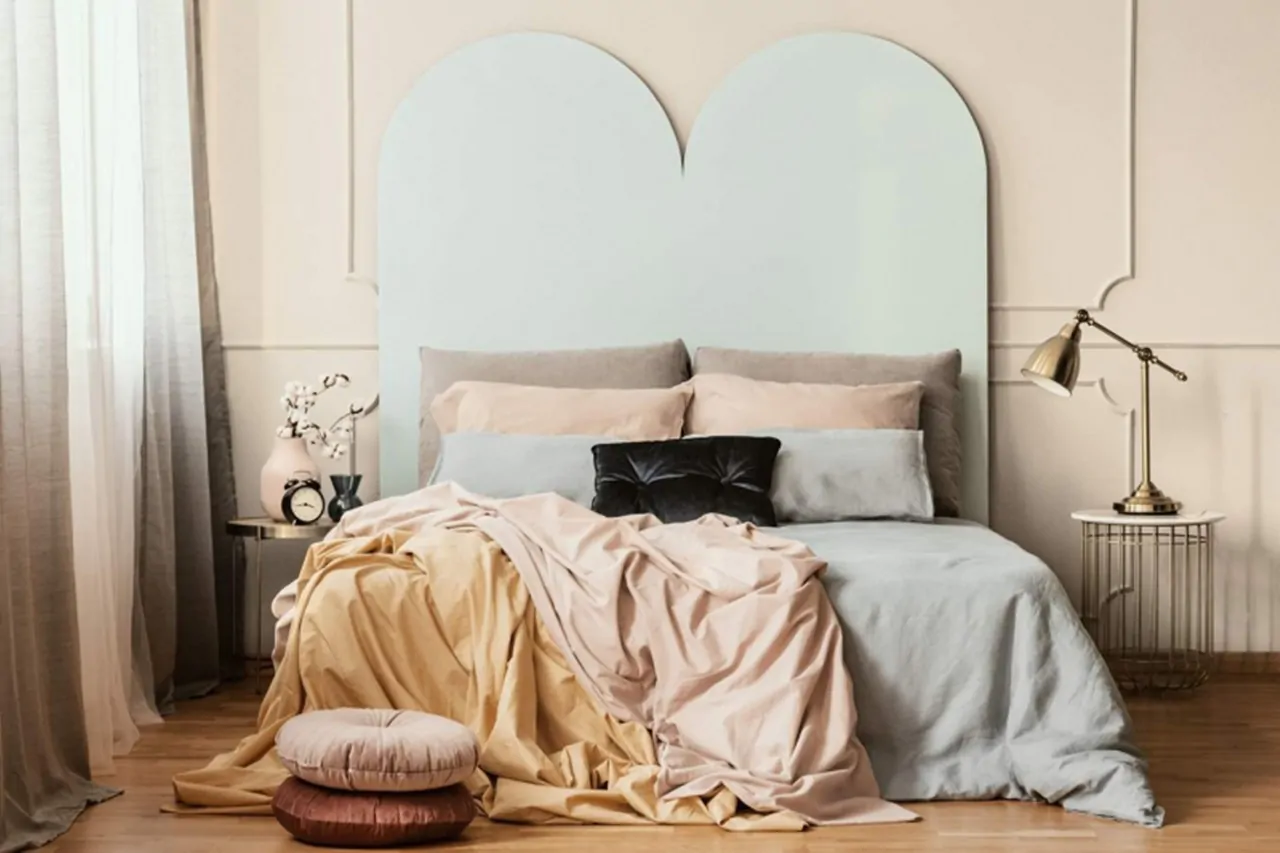 Niesztampowy zagłówek potrafi nadać intrygujący wyraz całej aranżacji. Jeśli zatem łóżko w sypialni nie ma fabrycznie wbudowanego wezgłowia, warto samemu je oryginalnie zaaranżować i w ten sposób podkreślić indywidualny styl wystroju.