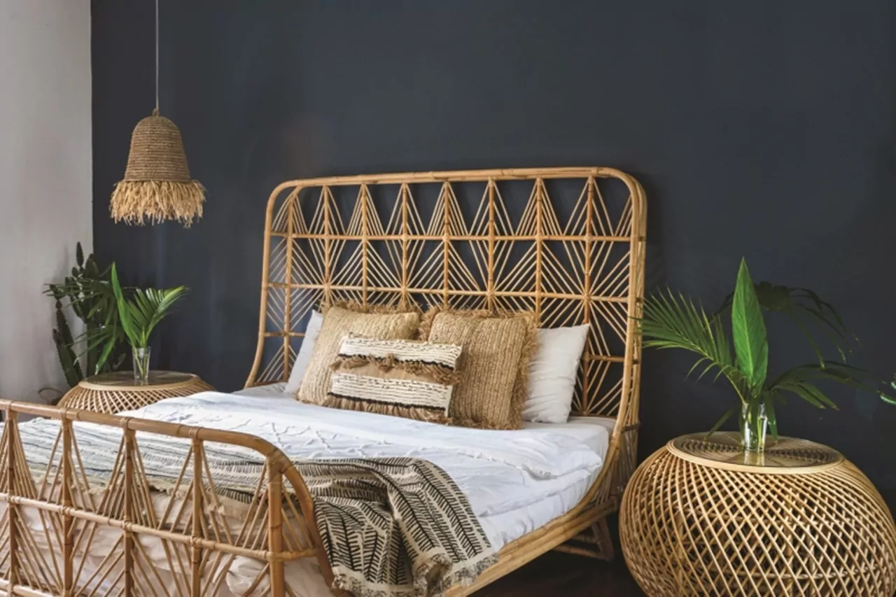Również rattanowe meble z niezwykłą łatwością wpasowują się w stylizacje inspirowane bohemą. Stanowią też słuszny wybór dla osób ceniących ciekawy design i luźny styl. Za sprawą ażurowego splotu nawet wnętrzom w ciemnym wykończeniu dodają niezwykłej lekkości i wdzięku. Ze smakiem komponują się zwłaszcza z barwami zaczerpniętymi ze świata przyrody, jak przywodzący na myśl burzowe niebo M436 z palety Tikkurila. Oczywistym towarzyszem dla naturalnego rattanu są także zielone rośliny, które świetnie współgrają z jego nienachalną estetyką i budują przytulny klimat wnętrza.